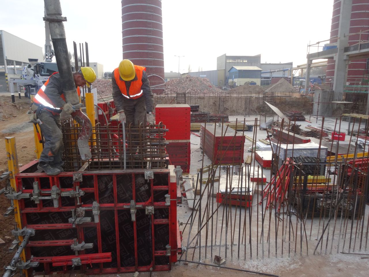 - kompletne osadzenie kotew fundamentowych oraz elementów traconych pod kotwy fundamentowe w płytach zewnętrznych pod wentylatory oraz płytę pod elektrofiltr.